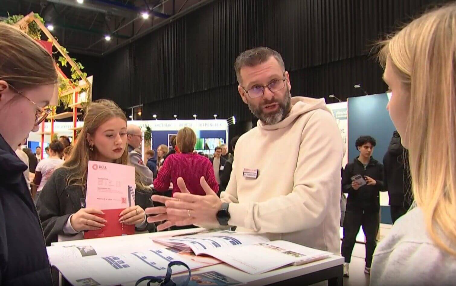 De Brabanthal staat tijdens de jaarlijkse SID-inbeurs vol met standen van hogescholen en universiteiten. Vandaag, morgen en zaterdag komen hier elke dag ongeveer 5.000 leerlingen van het zesde middelbaar langs om zich te informeren over richtingen die ze eventueel volgend jaar willen studeren. "Ik denk dat ik biomedische laboratoriumtechnologie wil gaan studeren aan de UCLL", zegt één van hen.