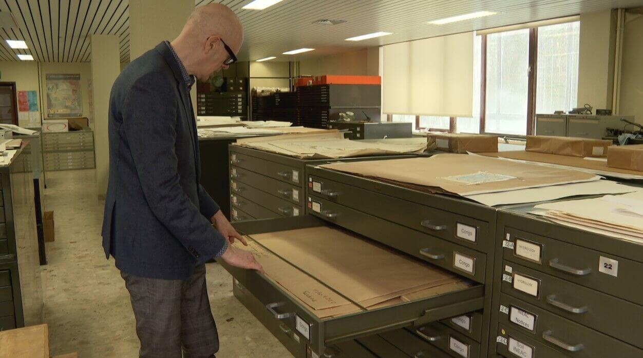 In het opslagdepot van het AfricaMuseum vind je geologische kaarten, die aangeven wat er in de ondergrond zit in Centraal-Afrika en documenten over Congolese grondstoffen. Als je alles achter elkaar zou leggen goed voor een halve kilometer aan documenten. Kostbare informatie die het mijnbedrijf Kobold Metals graag wil bemachtigen.