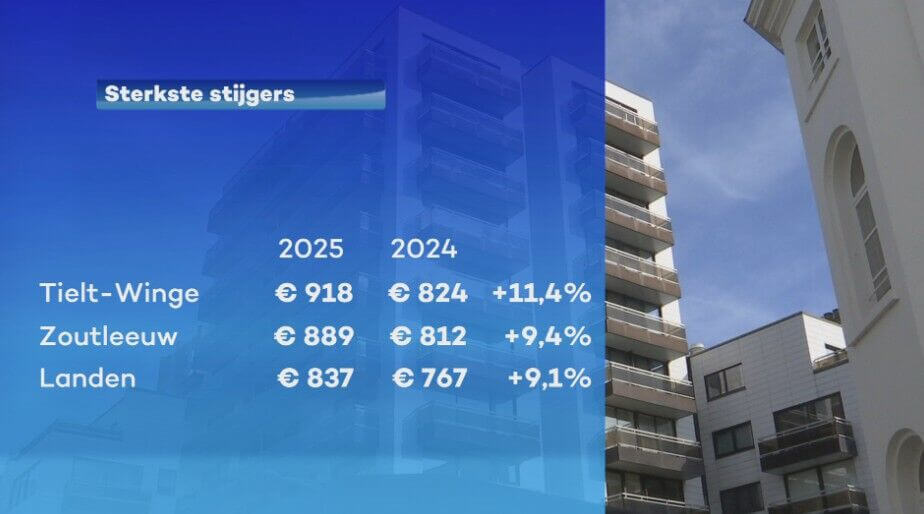 Een appartement huren is in onze regio opnieuw duurder geworden. Vorig jaar stegen de huurprijzen met gemiddeld drie procent. Dat blijkt uit een studie van CIB, de belangenorganisatie van de Vlaamse vastgoedsector. Leuven blijft de duurste centrumstad van Vlaanderen, maar wie in onze regio huurt, betaalt gemiddeld het meest in Tervuren. De grootste stijging zien we in Tielt-Winge, in Rotselaar zien we dan weer een opvallende daling.