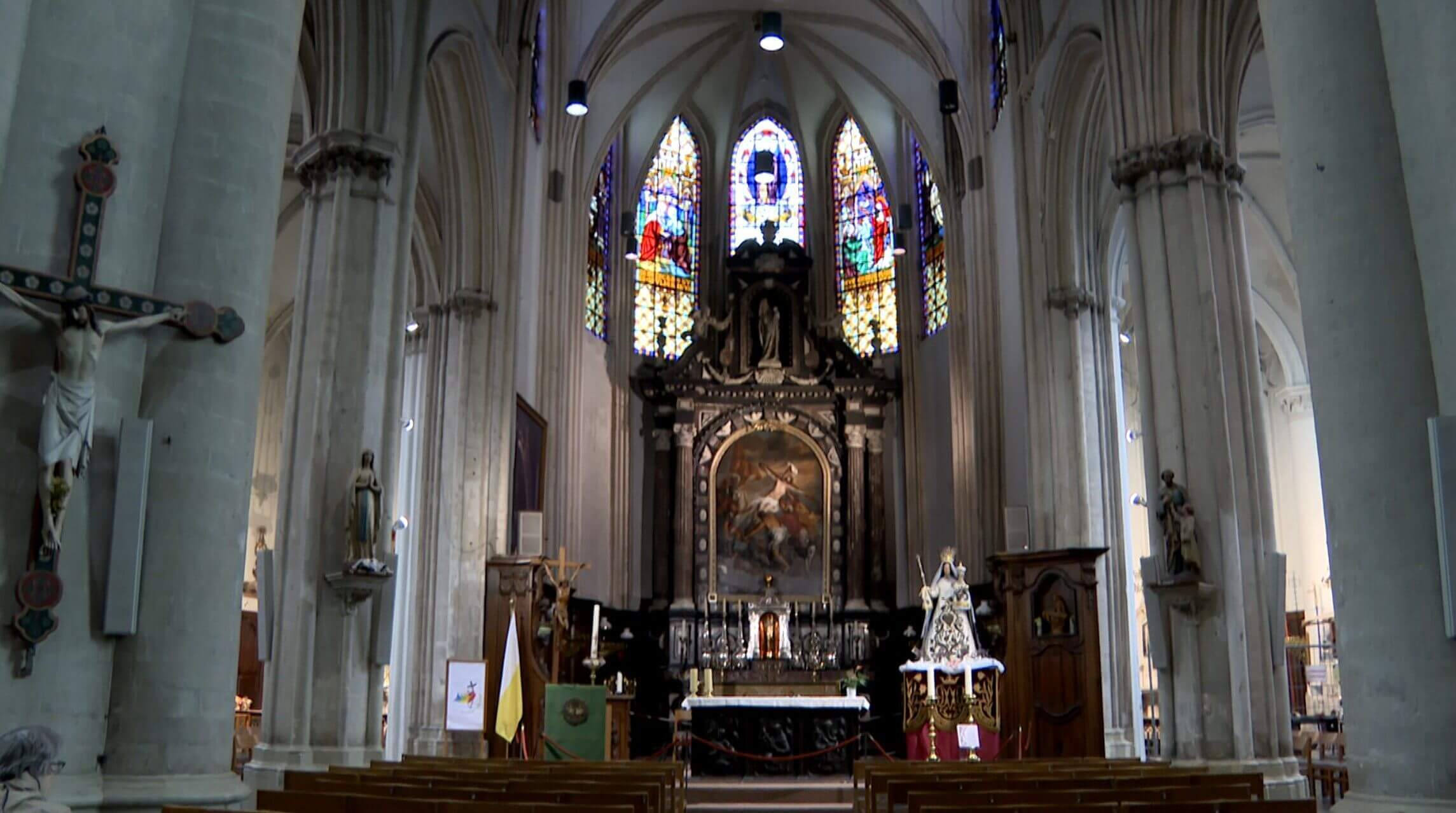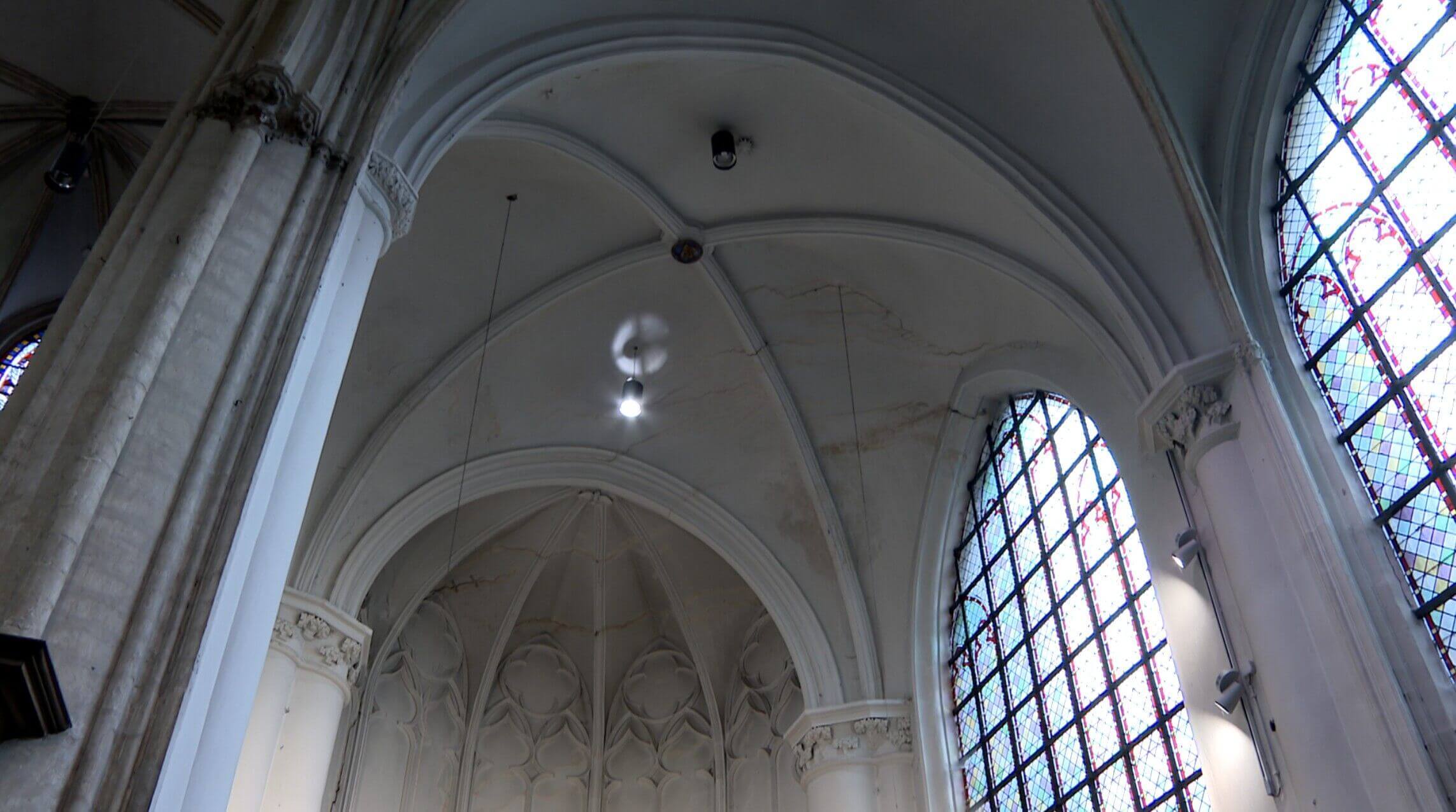 Nu gaat de fundering tot een vijftal meter onder de kerkvloer aangepakt worden. Ook bovenaan krijgt het gebouw versterking: er komen werken aan het dak, de gevels en de glasramen. Totaal kostenplaatje is 1,3 miljoen euro. Iets minder dan de helft van dat bedrag betaalt de stad zelf, om een van haar belangrijkste monumenten in ere te herstellen.