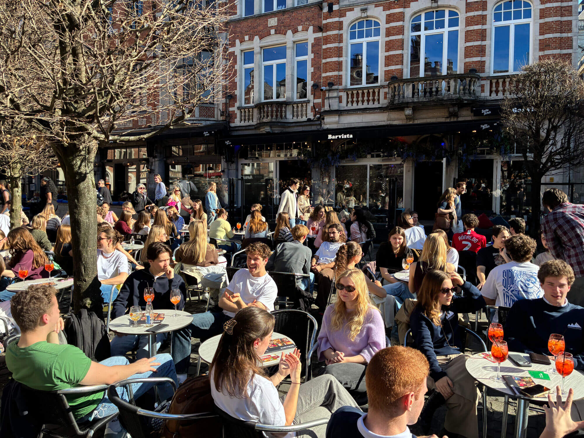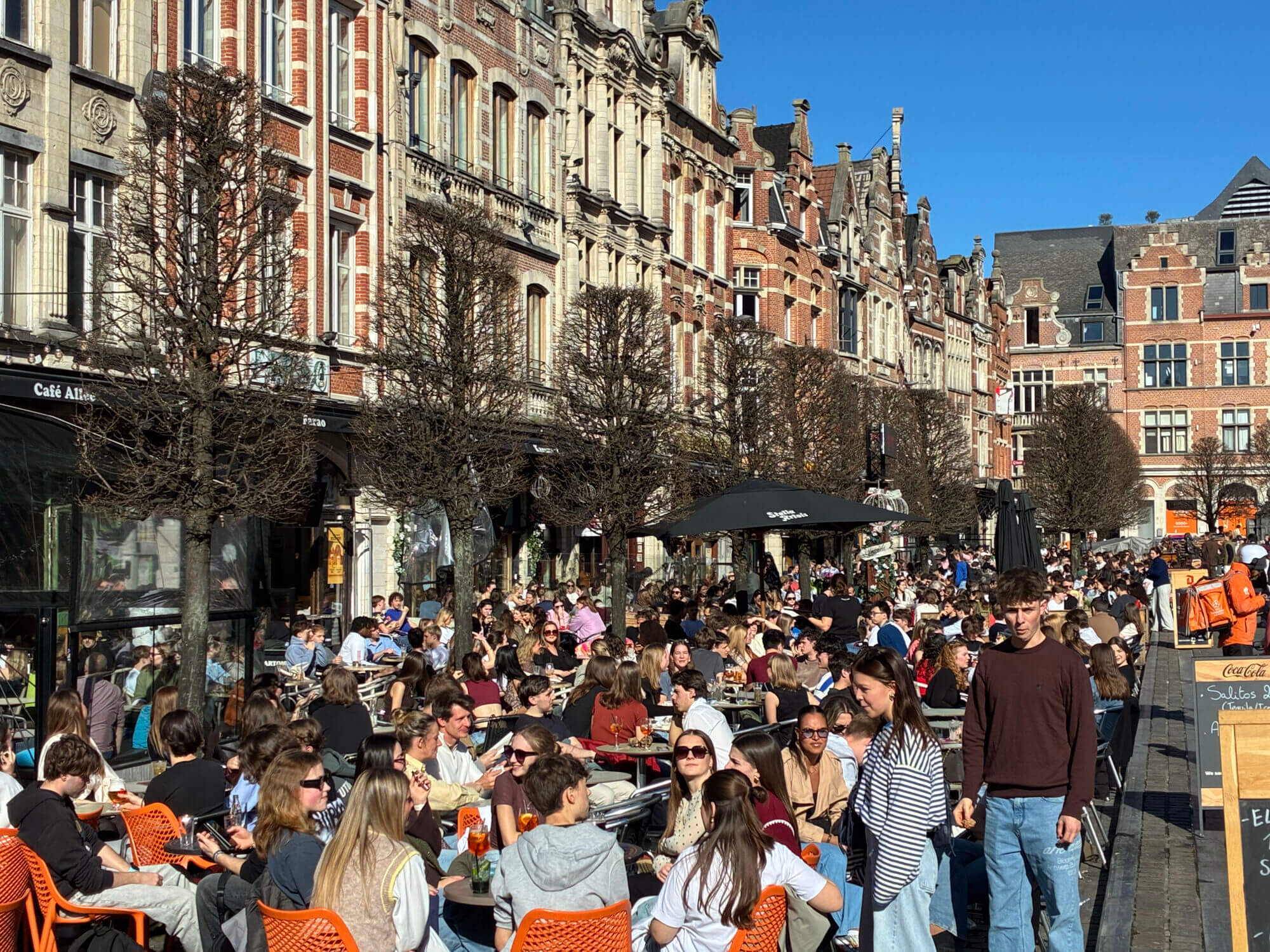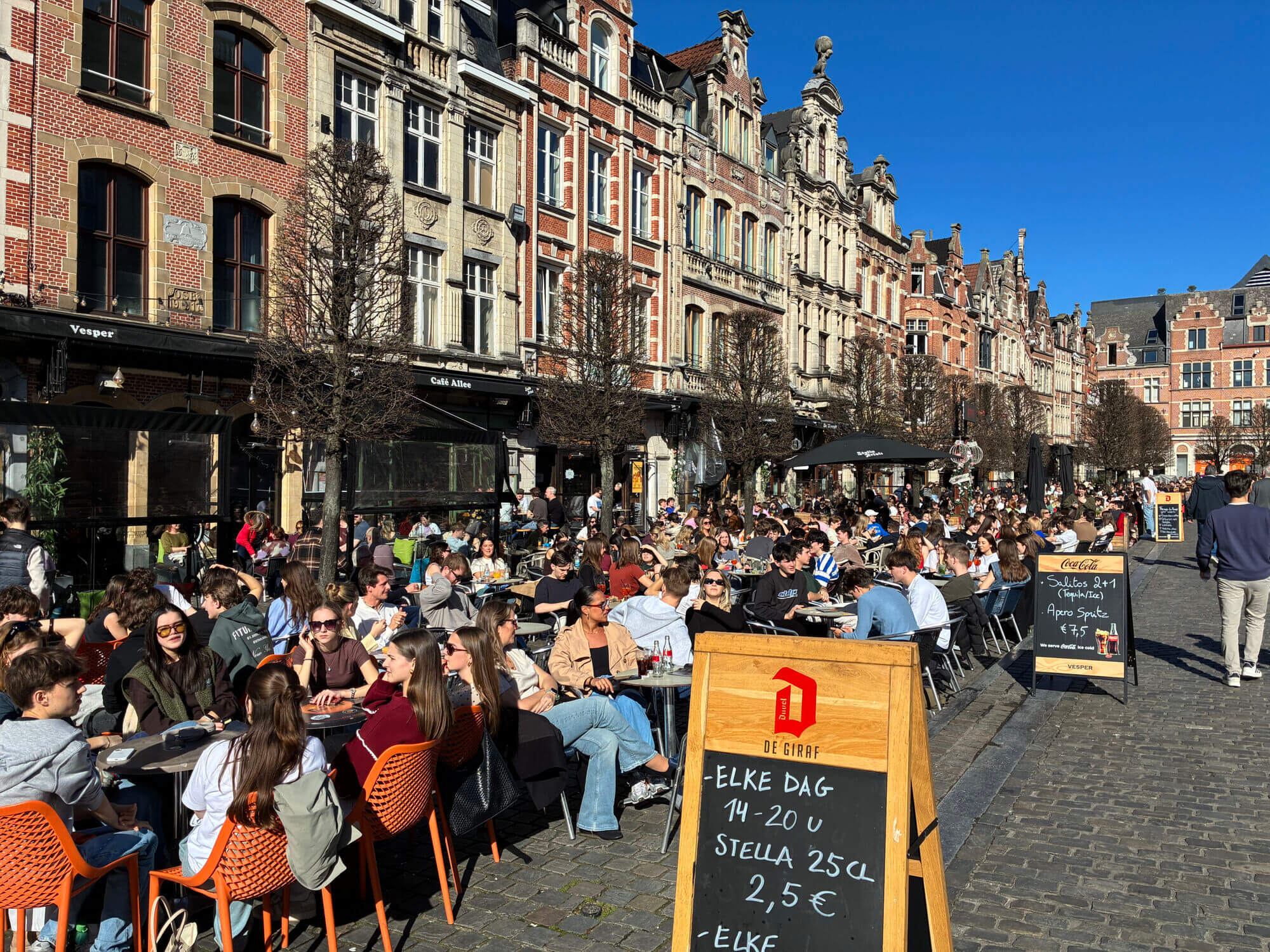 BEKIJK: Bomvolle Oude Markt in Leuven op eerste lentedag