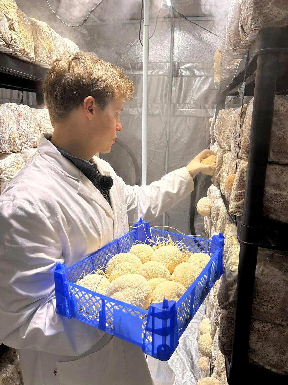 Edward Verbeure neemt ons mee in één van z'n groeitenten op de citadel van Diest. Het is op deze plek dat die met z'n bedrijf Fort Funga een toch wel bijzondere paddenstoel kweekt. Edward heeft agro- en biotechnologie gestudeerd en was altijd gefascineerd door het vak. Hij wilde er iets mee doen en een jaar geleden raadt iemand hem de citadel aan om met z'n kwekerij te beginnen.