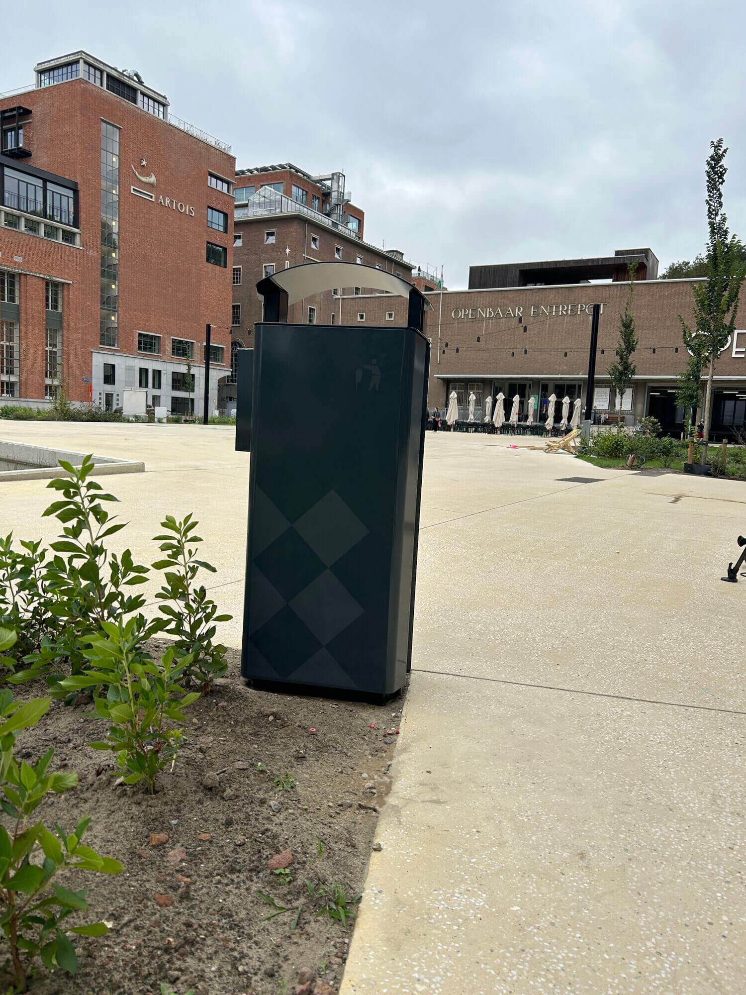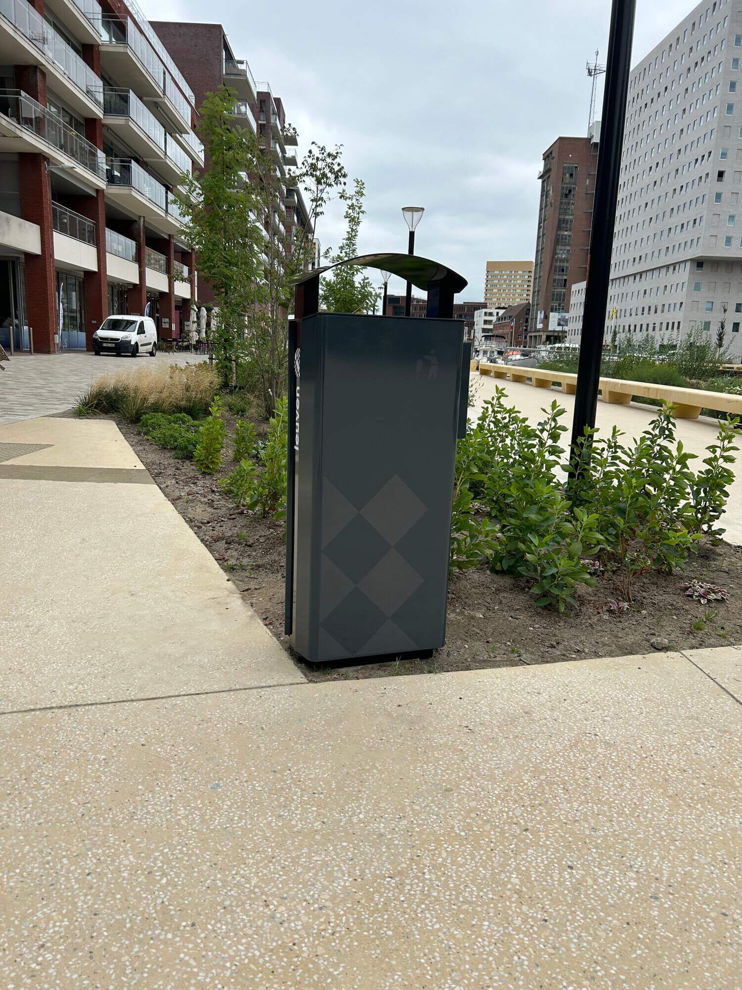 Eerste van minstens 300 nieuwe vuilnisbakken in Leuvense binnenstad vanmorgen aan Vaartkom geplaatst: "1600 euro per stuk"
