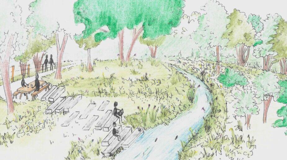 Er komt ook een rustplek met stapstenen tot aan het water en een picknickbank.