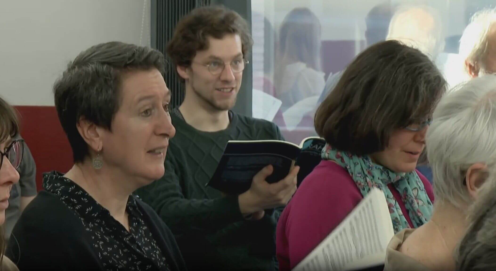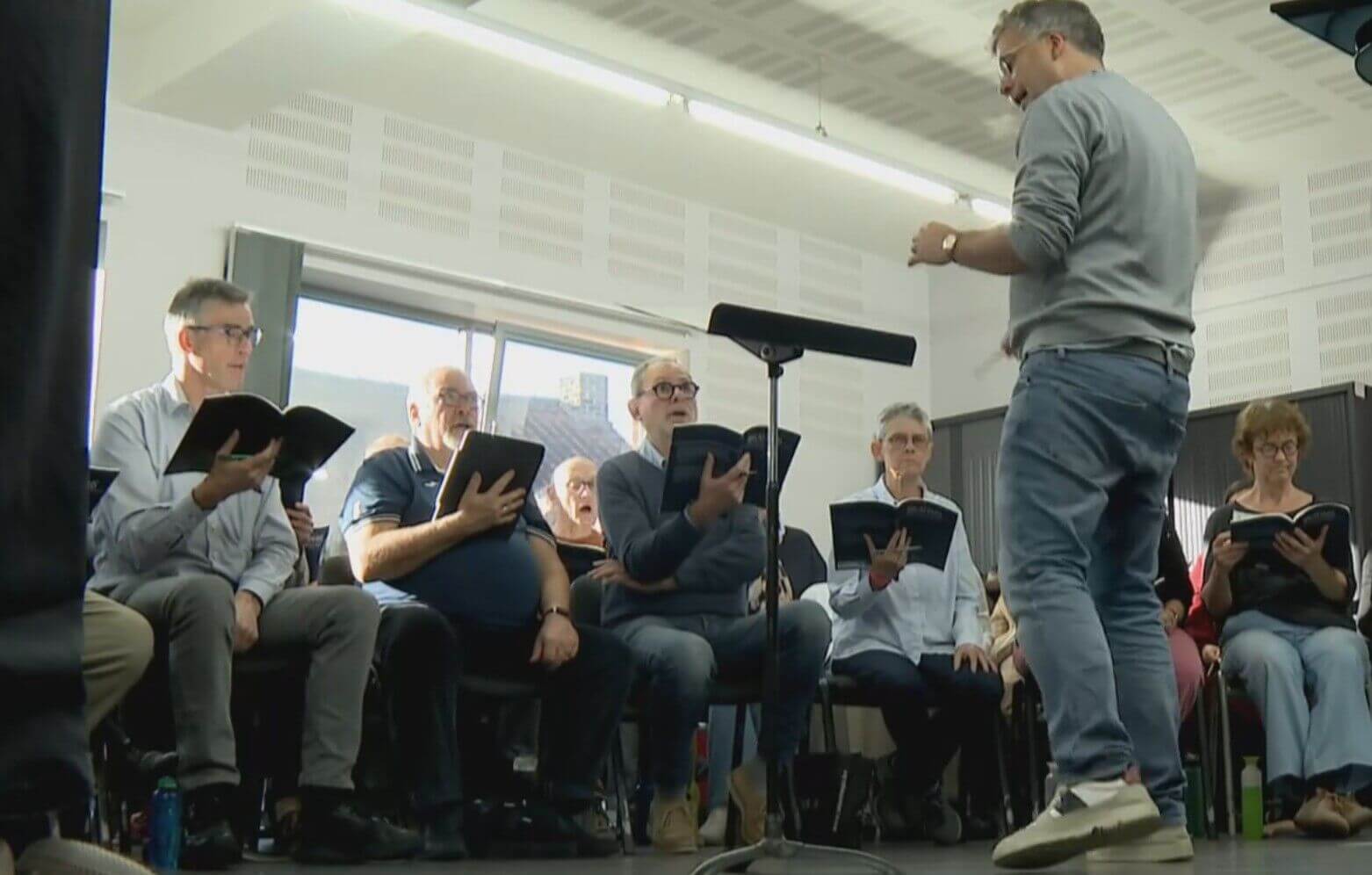 Schneider is van beide koren afzonderlijk dirigent. Het is de eerste keer dat ze samenwerken. De koorleden zijn zowel over de samenwerking, als de dirigent tevreden. "Het is echt wel heel fijn, we vullen elkaar al heel goed aan", zegt Inge Gorgon. "Het was vandaag ook heel fijn om het met de pianisten te repeteren."