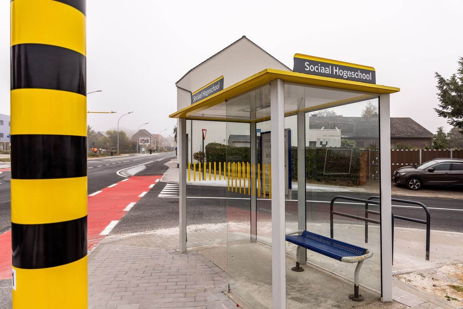 Het gaat om de halte 'Heverlee Sociaal Hogeschool' die nu dichter bij het kruispunt van de Groeneweg ligt. De nieuwe halte heeft ook verhoogde perrons, met extra voorzieningen voor blinden en slechtzienden. Ook de voetpaden en de fietspaden langs de bushalte en oversteekplaats zijn mee aangepast. De oude bushaltes verderop werden weggehaald zodat de zones kunnen worden onthard, en plaats kunnen maken voor grasperken.