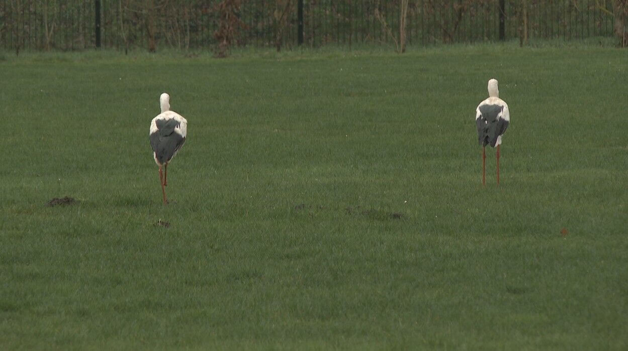 Drie weken na de vrouwelijk ooievaar is nu ook het mannetje geland aan het bezoekerscentrum van het Webbekomsbroek. Niet zonder slag of stoot. Het dier mist een deel van zijn poot. Het gaat om hetzelfde dier dat twee jaar geleden verwikkeld raakte in visdraad. Mogelijk heeft die de bloedtoevoer naar de poot afgesneden en is het onderste deel van de poot daardoor geleidelijk aan afgestorven. "Waarschijnlijk is dat niet problematisch, want dat noemen ze droge Gangreen", zegt Jean-Pierre Nijns.