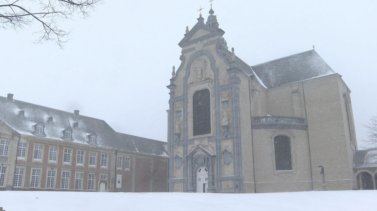 Rond negen 's morgens valt de eerste sneeuw in onze regio. De vlokken vallen er meteen goed uit. Onder meer aan de Abdij van Averbode.