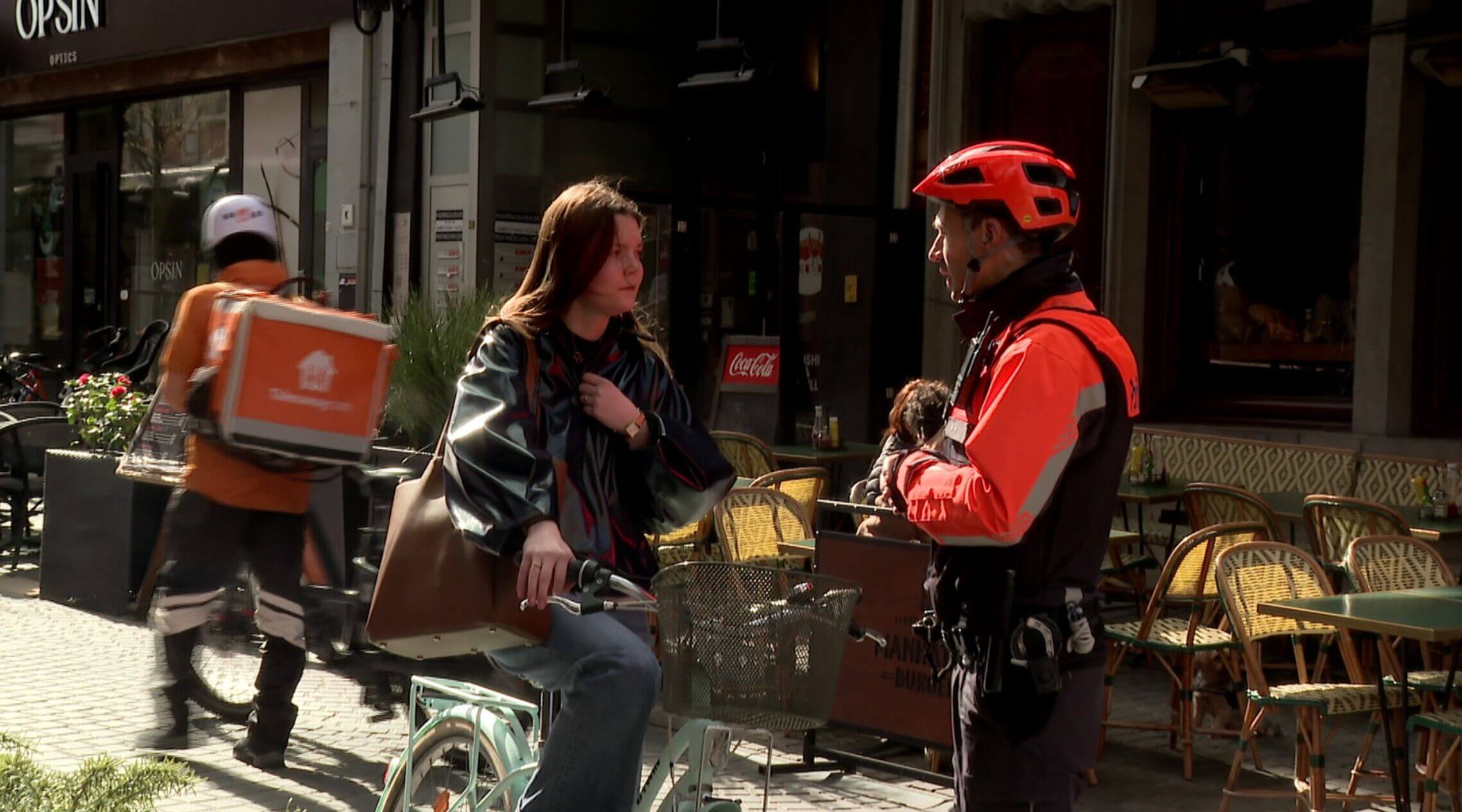 De politie houdt vanmiddag fietsers tegen die zich niet aan de regels houden. Ze stuurt ze door naar een vertegenwoordiger van de stad of een gemeenschapswacht, een beetje verderop. Het praatje is onderdeel van een nieuwe campagne van de stad. De komende drie weken vinden dit soort acties plaats op drukke plekken tijdens drukke momenten. "De politie werkt samen met onze stadsdiensten, preventiedienst en gemeenschapswachten om mensen te sensibiliseren en informeren", zegt Mohamed Ridouani. "Mensen die kleine overtredingen begaan of iets te snel rijden zullen tegengehouden worden."