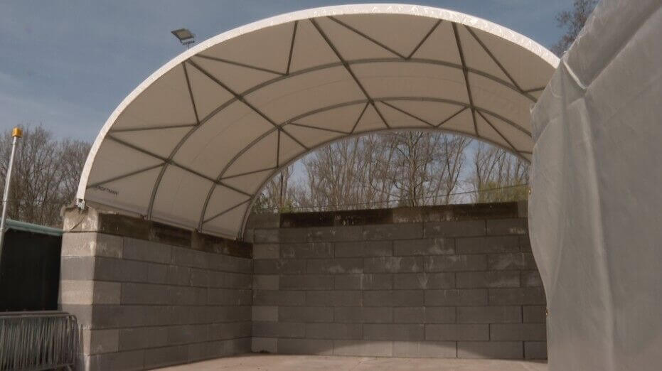 De gemeente kreeg van veel inwoners de vraag om voor gras- en bladafval te werken met ondergrondse containers zodat ze niet elke keer het trapje op- en afmoeten. Het park is daar te klein voor, maar er is wel een ergonomische oplossing gevonden. "De inwoners van Keerbergen en ook alle inwoners die naar dit recyclagepark willen komen vanuit de regio, die kunnen hun gras- en bladafval hier op de vloer deponeren", zegt Jonathan De Witte. "Dat is een overdekte ruimte die we daar gecreëerd hebben."