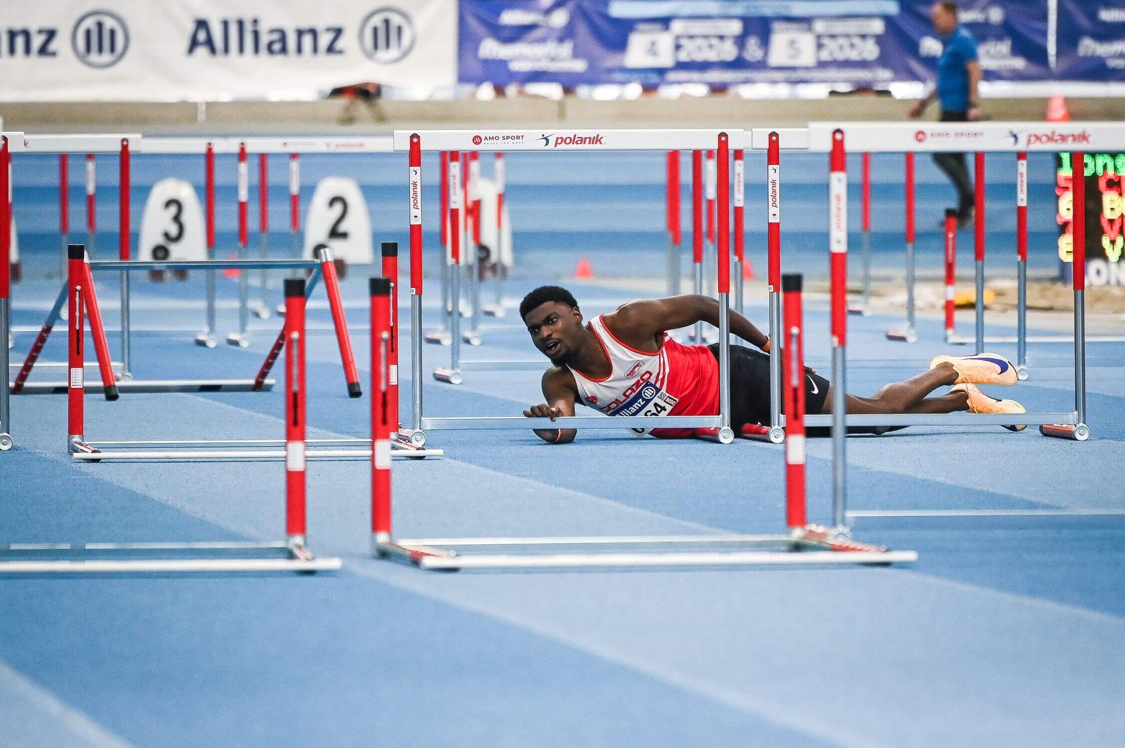 Heel wat minder geluk is voor Elie Bacari, hij blesseert zich op dezelfde afstand aan de hamstring. De Belgische recordhouder finisht niet, en door de blessure komt ook zijn deelname aan het WK eind deze maand in gedrang.