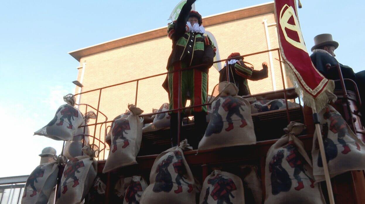 Daar moeten ze nog even op wachten, maar tijdens de intrede krijgen ze wel al snoepgoed. Dat wordt onder meer van deze koets van 403 jaar oud gegooid. In de sintstoet zijn er voor het eerst ook twee allergenenpieten. Zij zorgen er voor dat ook de gevoelige buikjes blije buikjes zijn.