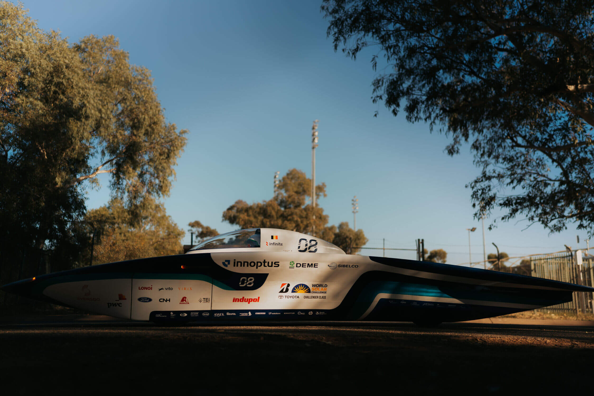 "We moeten nog 900 kilometer rijden en alle teams liggen op minder dan 8 minuten van elkaar." Maarten Vansteenkiste, Energetisch Ingenieur Innoptus Solar Team