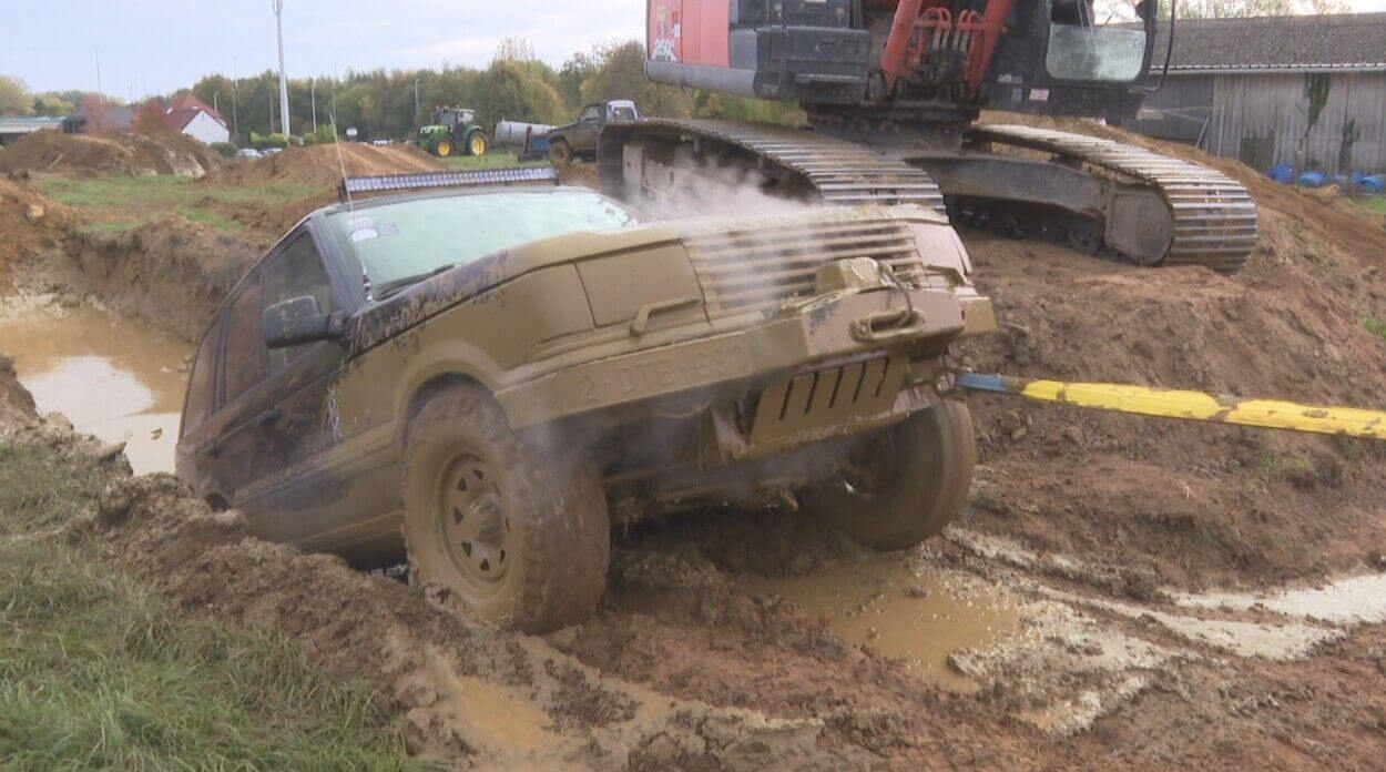 "Het is de bedoeling dat je met je voertuig op een zo goed mogelijke manier het terrein en de hindernissen neemt. We hebben dat hier een drietal dagen aan een stuk aangelegd en dat is met verschillende hindernissen zoals bergen, kuilen ... Zoals je hier achter mij ziet hebben we ook een diepe put met water in en dat zorgt ook voor het spektakel." Al is die put toch net iets dieper dan velen op voorhand dachten. Maar dat laten deze chauffeurs niet aan hun hart komen.