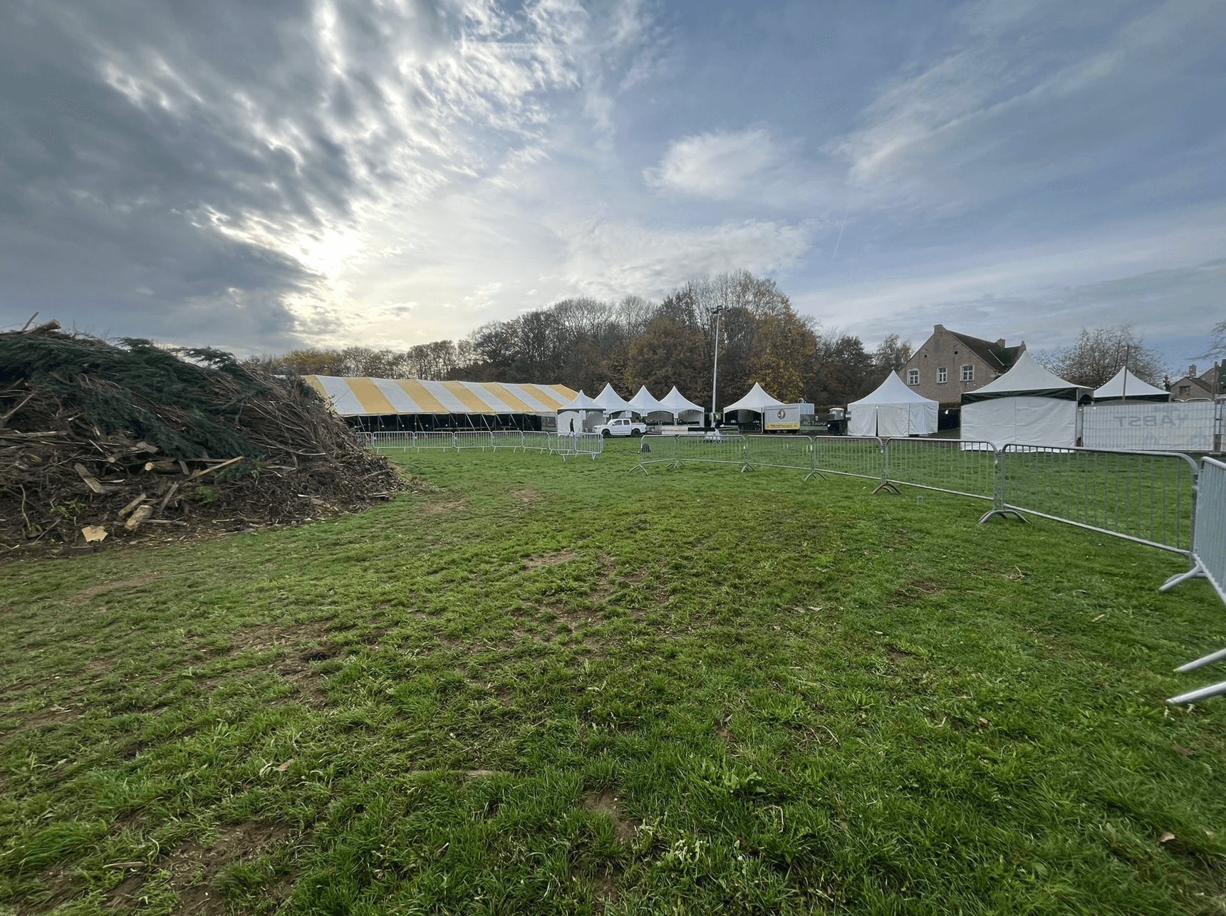 De houtstapel ligt al klaar om aangestoken te worden. Vanavond vanaf 19 uur is iedereen welkom voor het Sint Maartensvuur in Tielt-Winge. Het stuk weide naast Huize Hageland is voorzien op veel volk.
