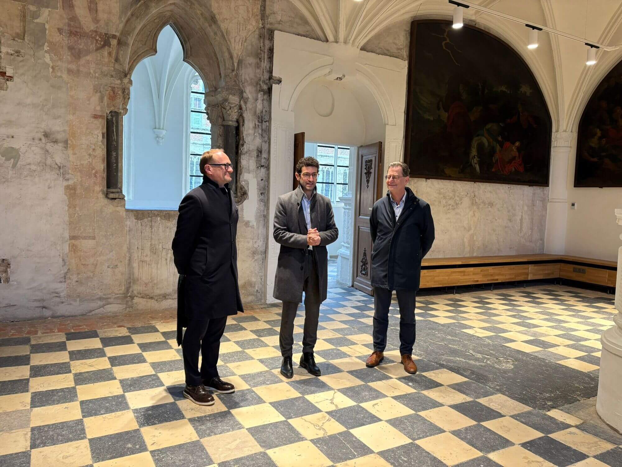 Vlaams minister van Onroerend Erfgoed Ben Weyts komt muurschilderingen in de Abdij van Park in Leuven bezichtigen