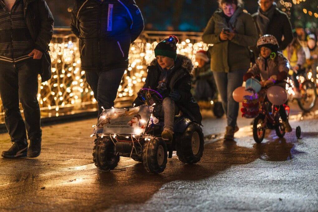 Voor de allerkleinsten is er opnieuw de Lichtstoet op Wieltjes op zaterdag 20 december: kinderen vanaf drie jaar kunnen deelnemen met een versierd fietsje, step of driewieler.
