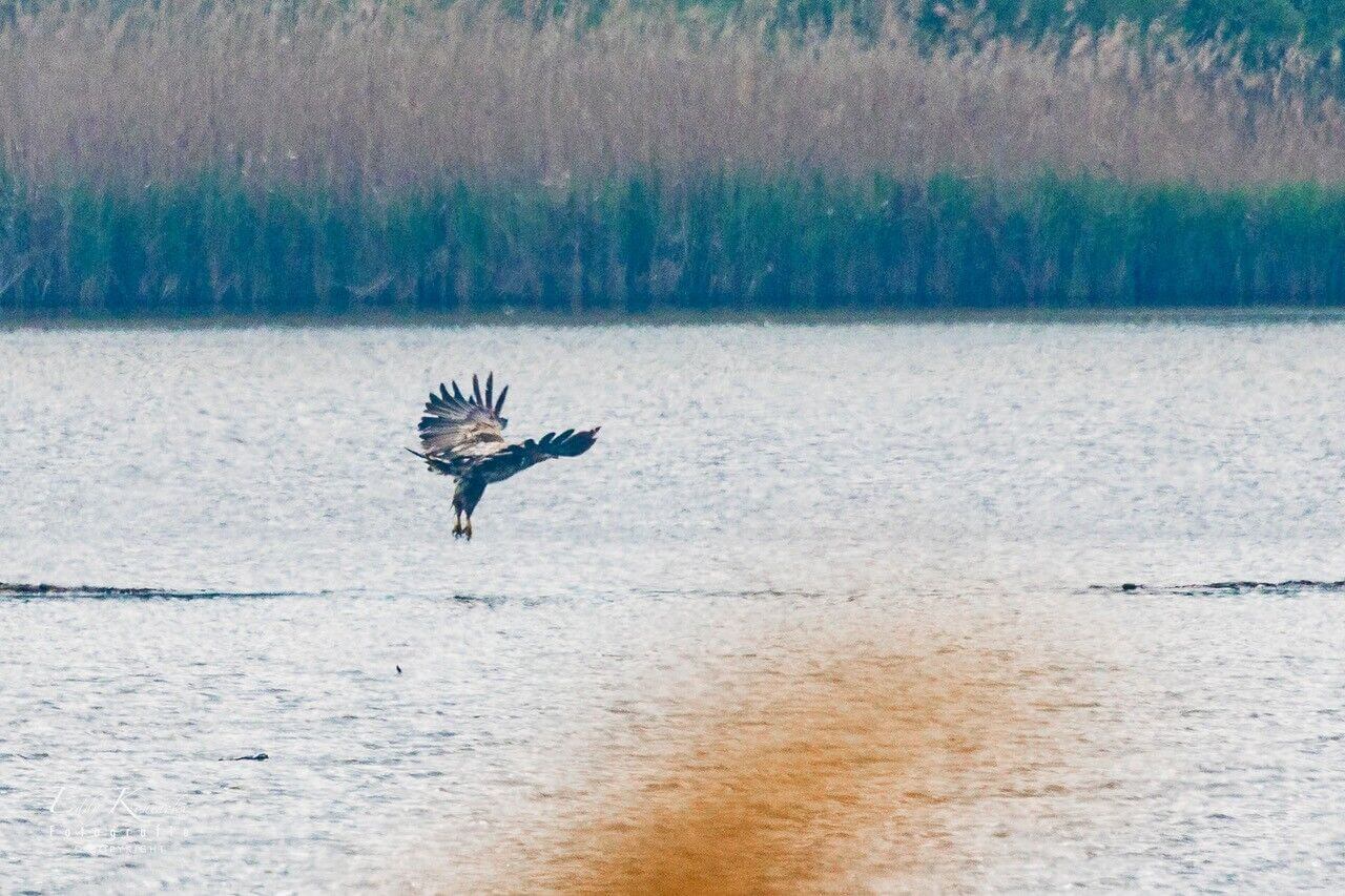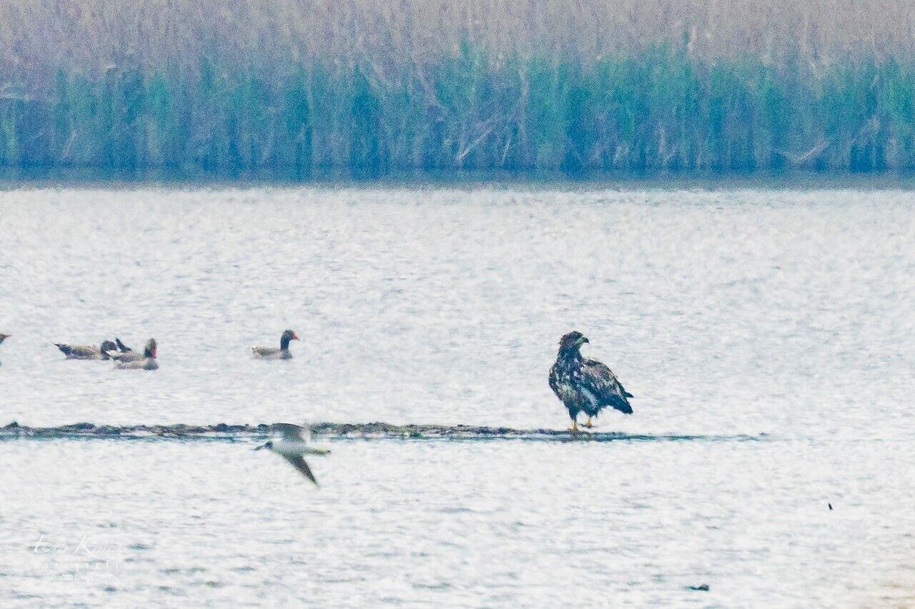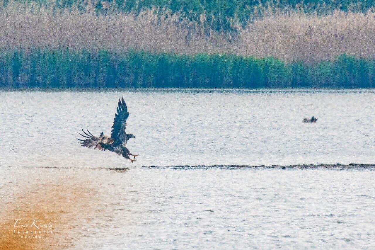 Vanmorgen landt de zeearend op het meer in Het Vinne. Daar kan fotograaf Eddy Koninckx de vogel vastleggen. Hoewel het niet de eerste keer is dat de zeearend in onze regio te zien is, blijft het toch een zeldzaam moment.