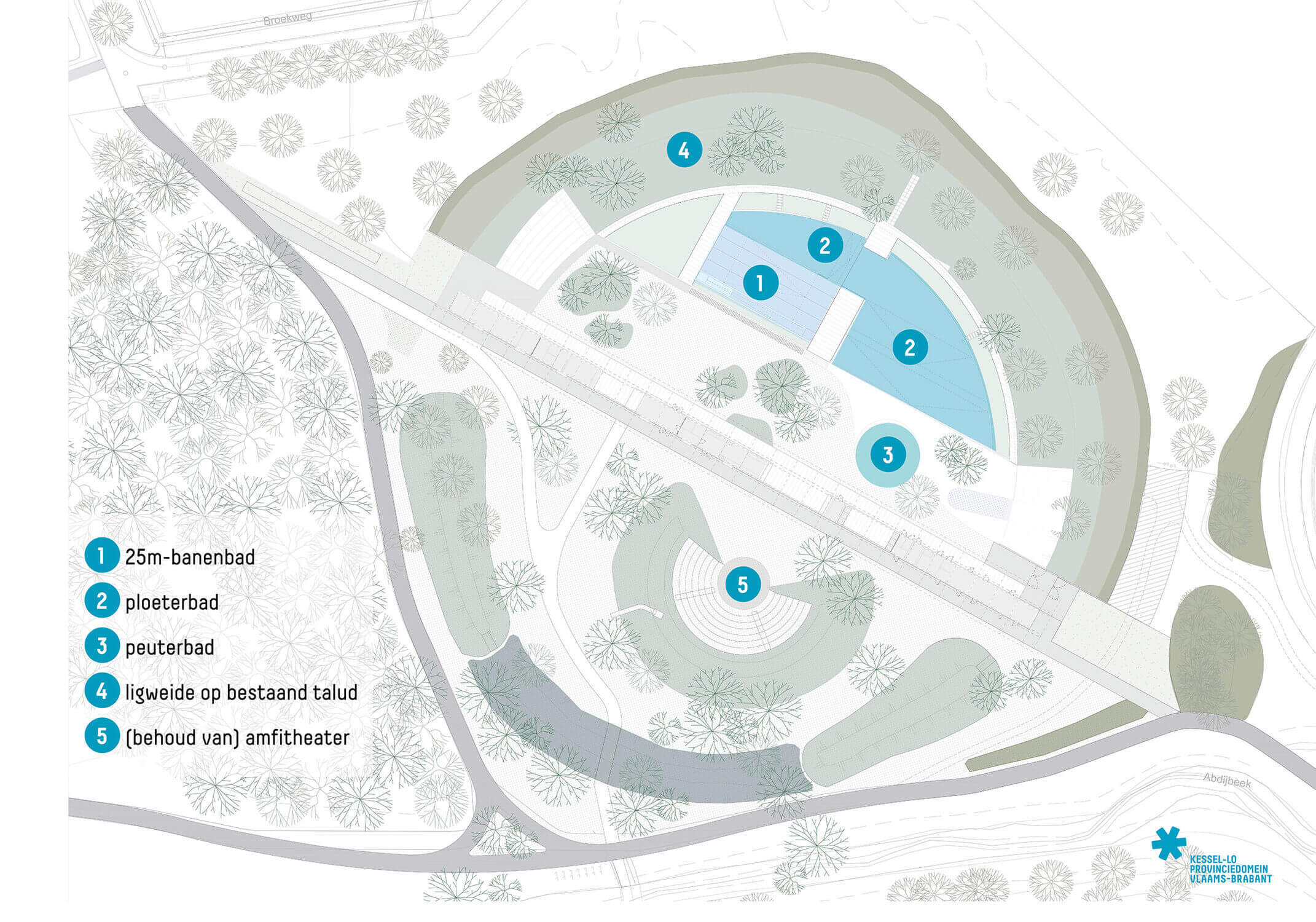 Ook voor het provinciedomein van Kessel-Lo is het voorontwerp voor de nieuwe zwemzone goedgekeurd. Naast de zwemzone komt daar ook een splinternieuw gebouw van 138 meter lang. Daar komen onder meer de kleedkamers in, maar er komt ook een horecapunt. De provincie investeert net geen 7 miljoen euro. De stad Leuven net geen 5 miljoen. Op expliciete vraag van de stad komt er een 25-meterbad. Dat ook door de clubs gebruikt kan worden.