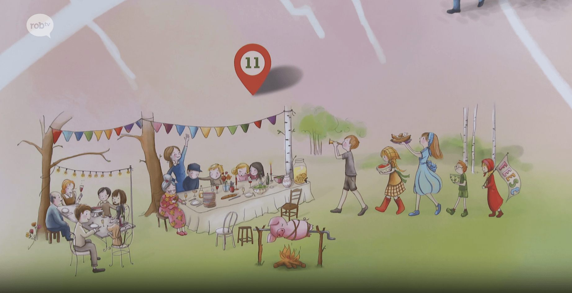 "Ik heb zoveel mogelijk de verhalen gekozen waar echt een anekdote achter zit en dat herhalend terugkwam bij de mensen. Zodat ze zich herkennen als ze de wandeling gaan doen of als ze de kaart komen bezichtigen", vertelt ze. "Ik kon mij dan helemaal inleven in die verhalen. En zo begin ik dan te illustreren."