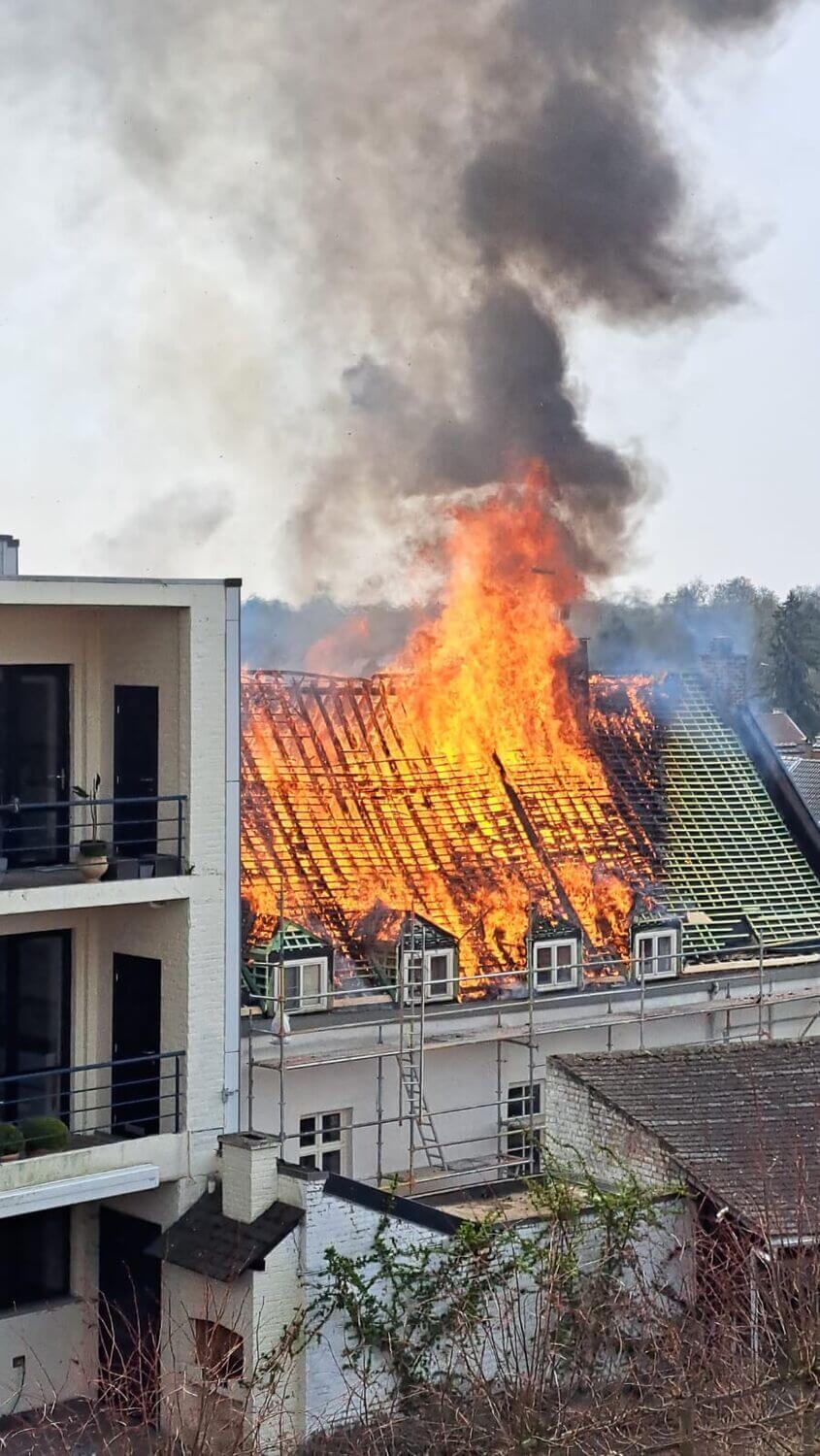 In amper een kwartier is de hele dakconstructie van de woning in de Oude Kleerkopersstraat volledig uitgebrand. Er vallen gelukkig geen gewonden, maar de schade is enorm. De hulpdiensten zijn snel ter plaatse en zetten de volledige straat af. "De brandweer is heel snel ter plaatste gekomen en heeft de brand onder controle, maar zoals u ziet wordt er nog altijd nageblust en is de brandweer nu aan het bekijken om alles zo stabiel mogelijk te maken", zegt Jonathan Holslag.